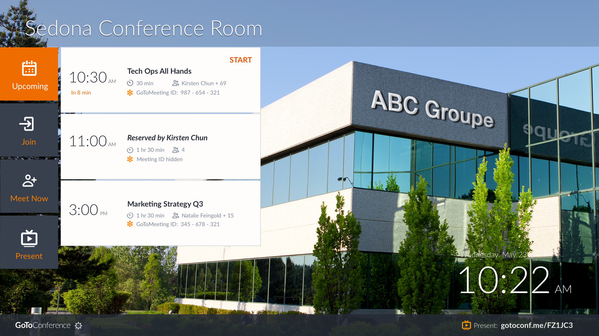 - Already scheduled a meeting? Simply start your meeting right from the conference room to get underway.