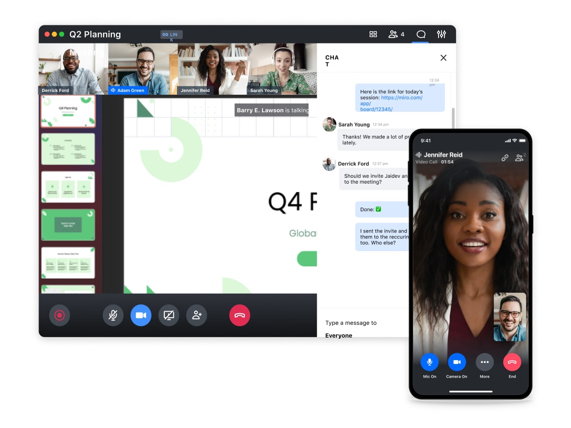 Renforcez l’intérêt et l’efficacité de la collaboration entre vos différents sites et employés distants. Participez à des visioconférences sécurisées et rassemblez votre équipe depuis n’importe quel appareil.
