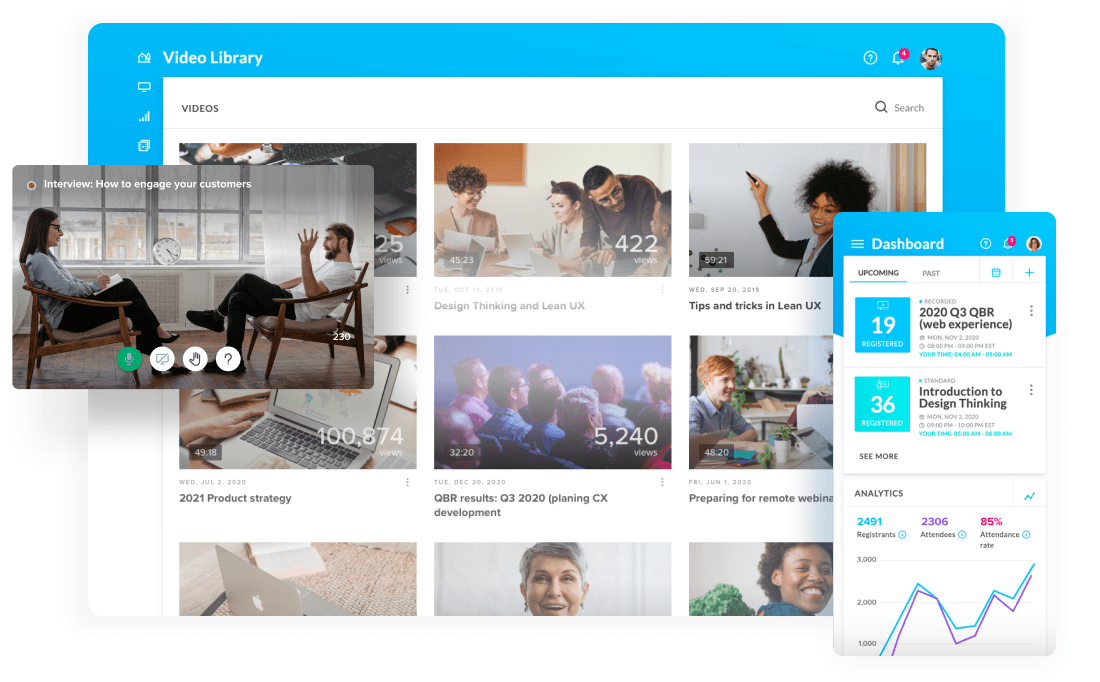 Run engaging, interactive events with live Q&A, polling & chat.